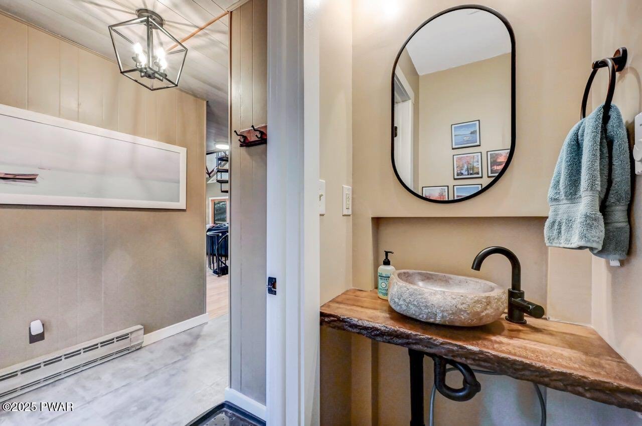 Stunning Roamingwood Lakefront Retreat in The Hideout - Fully Renovated!Discover luxury lakefront living in this completely renovated four-bedroom, two-and-a-half-bath home, perfectly positioned on a point lot for unmatched panoramic views from nearly every room. Located in The Hideout, a prestigious five-star gated community in the Northern Pocono Mountains, this home offers access to four seasons of top-tier amenities, including lakes, pools, golf, skiing, tennis, and more.With over 150 feet of private lake frontage, a gentle slope leads to the water, creating a park-like setting ideal for relaxation. Inside, enjoy two cozy fireplaces, an open-concept layout, and modern upgrades throughout. Outside, entertain around the fire pit, rinse off in the outdoor shower, and take in the breathtaking views. A paved driveway ensures convenience, while the spacious design provides plenty of room for the whole family.This must-see lakefront gem is the perfect year-round retreat--schedule your private tour today!