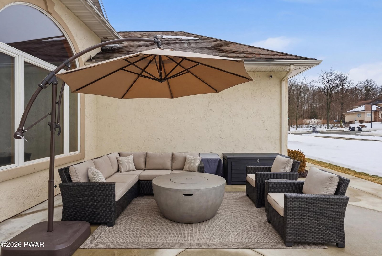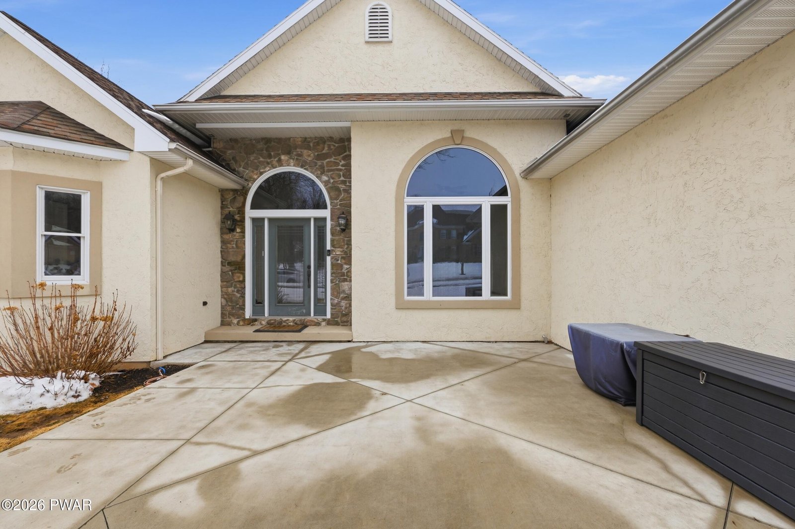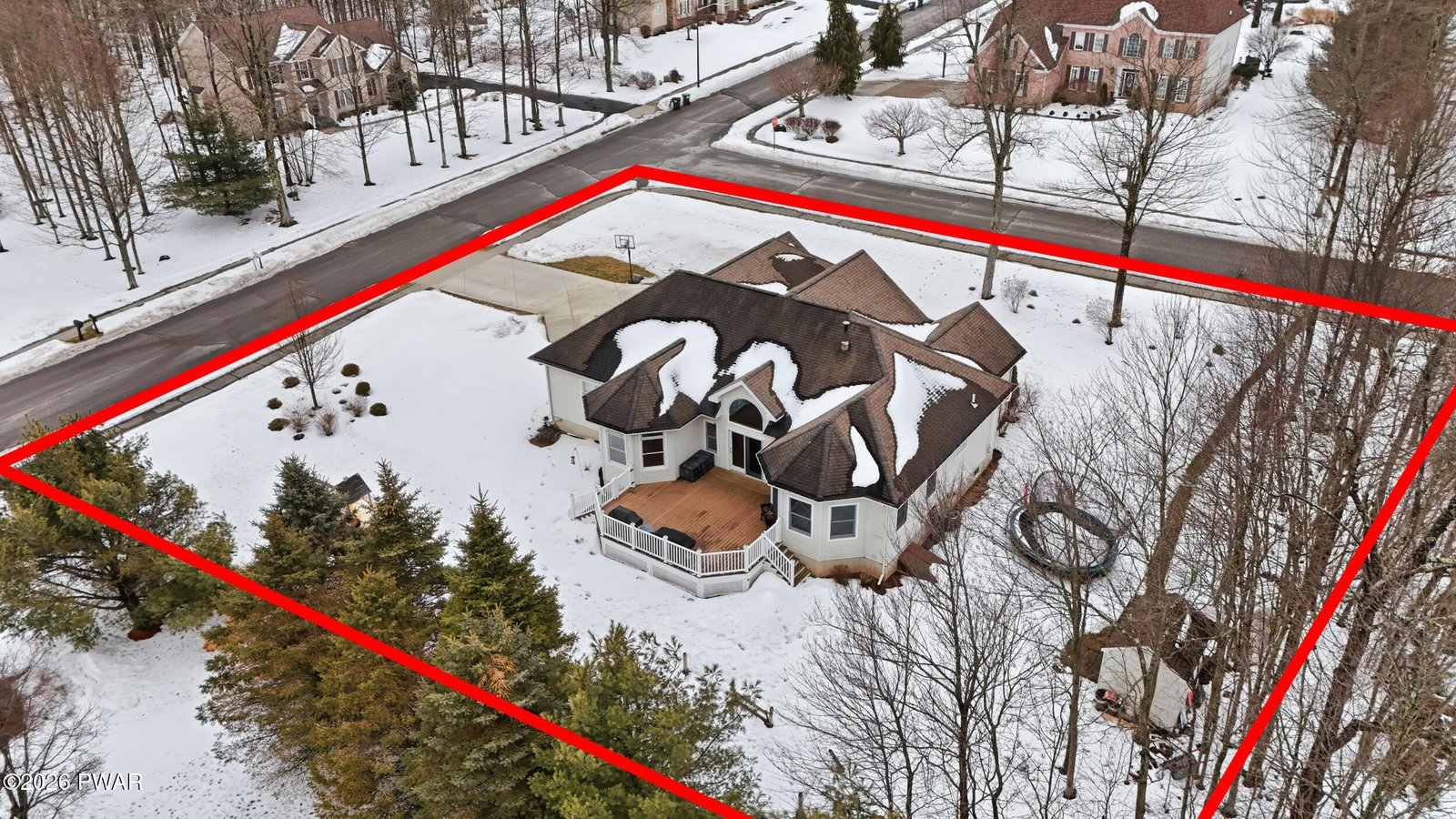 Rarely available ranch in Harmony Hills offering true one level living with a finished lower level and an exceptional layout. Vaulted ceilings and a remarkable amount of natural light define the main living areas. This well maintained and updated home features three bedrooms on the main level and three and a half bathrooms total.The open living and dining areas showcase hardwood floors and a pellet stove for added warmth and efficiency. The kitchen is designed for both everyday use and entertaining, featuring beautiful granite countertops, a large center island, a gas stove, and ample cabinet space. A bright kitchen nook provides additional dining space and is filled with natural light.A second pellet stove in the finished basement allows the lower level to function as comfortable additional living space year round.The primary bedroom includes a private en suite bathroom with a tub and updated walk in shower, along with a spacious walk in closet located in the bedroom. Two additional main level bedrooms share a Jack and Jill bathroom. Main level laundry adds everyday convenience.A newly renovated office with built in his and her desks provides a dedicated work from home or flex space.The finished basement significantly expands the home's living space and includes two additional sleeping areas, a full bathroom, and a wet bar with granite countertops, ideal for entertaining or guest use.Situated on a flat corner lot with usable yard space on all sides. The concrete driveway was redone within the last two years. Outdoor features include a front patio and a large Trex deck off the living room overlooking the backyard and garden area.Conveniently located with easy access to major highways, shopping, dining, and nearby Scranton and Dickson City.