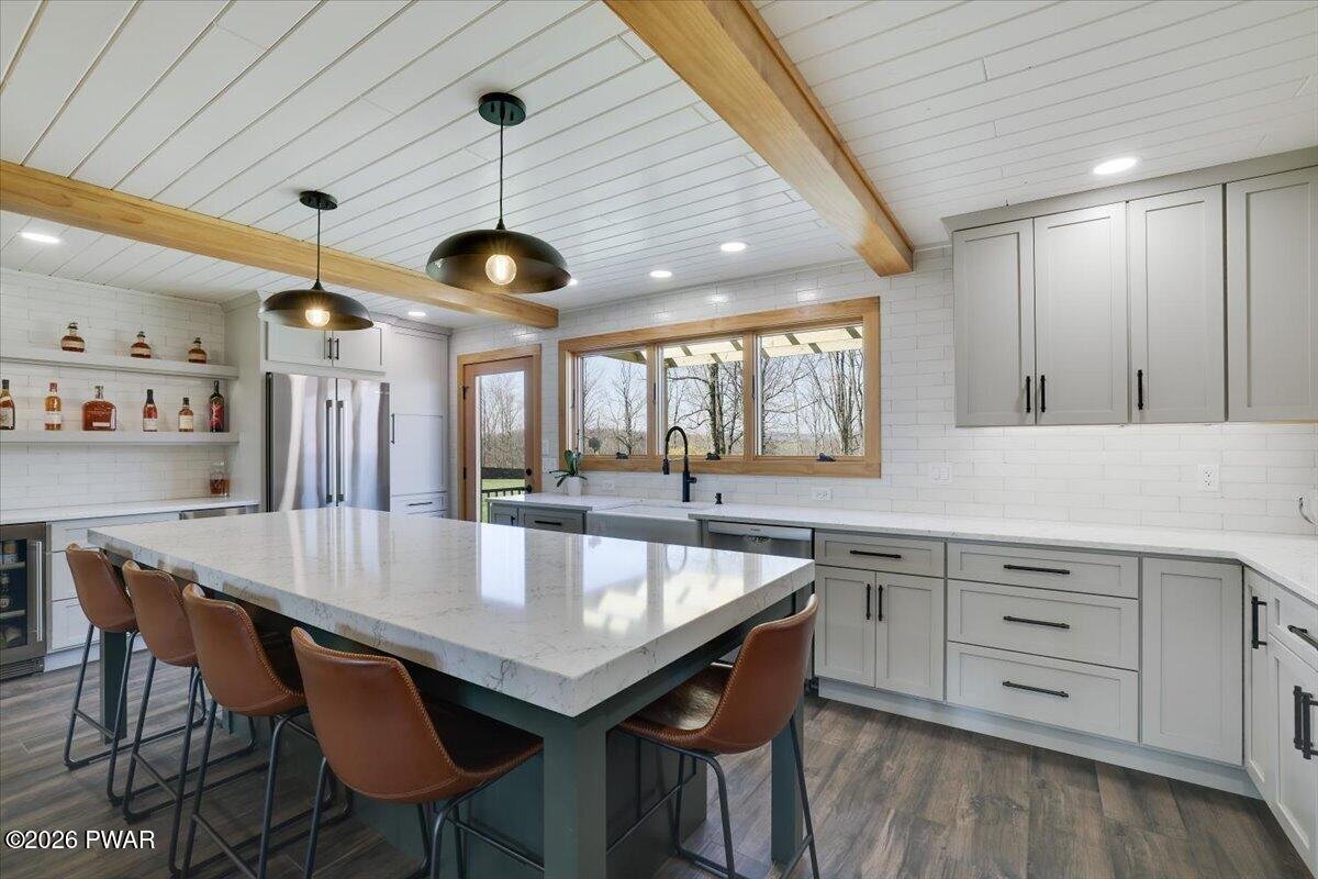 Long Pond Luxury Livin'Minutes from downtown Honesdale PA sits a property with 10 Acres, a long gated driveway and views of Wayne county that will allow you to let it all go. This fully reimagined home offers the perfect blend of privacy, nature, and high-end living. Completely gut-renovated by Clemleddy Home Builders, every detail has been thoughtfully upgraded with top-tier craftsmanship and finishes.The chef's kitchen is built to impress, featuring a professional-grade Wolf stove, Bosch appliances, farmhouse sink, built-in drink fridge & ice maker, and a fully custom pantry with outlets to keep countertops clean and clutter-free.Comfort and efficiency are unmatched with radiant floor heating, tankless hot water systems- whole-house Generac generator, and fully updated electrical, plumbing, and heating systems.Warm, inviting interiors feature custom stonework shiplap and tongue-and-groove woodwork, designer-grade bathrooms, and a restored Round Oak antique pot belly stove that adds warmth on cold winter nights & timeless character.Step outside to a full custom bluestone patio with hot tub, premium deck, panoramic views, and beautiful stone walls that frame the property. A fully insulated barn with radiant heat, plumbing, and electric offers incredible potential for a guest house, studio, income-producing space or absolutely epic garage/hangout. Additional highlights include a brand new metal roof, dual laundry hookups, and an unfinished basement ready for expansion with full bath potential. A rare opportunity to own a truly turnkey home where luxury, craftsmanship, and lifestyle come together. Don't wait, the time is now!