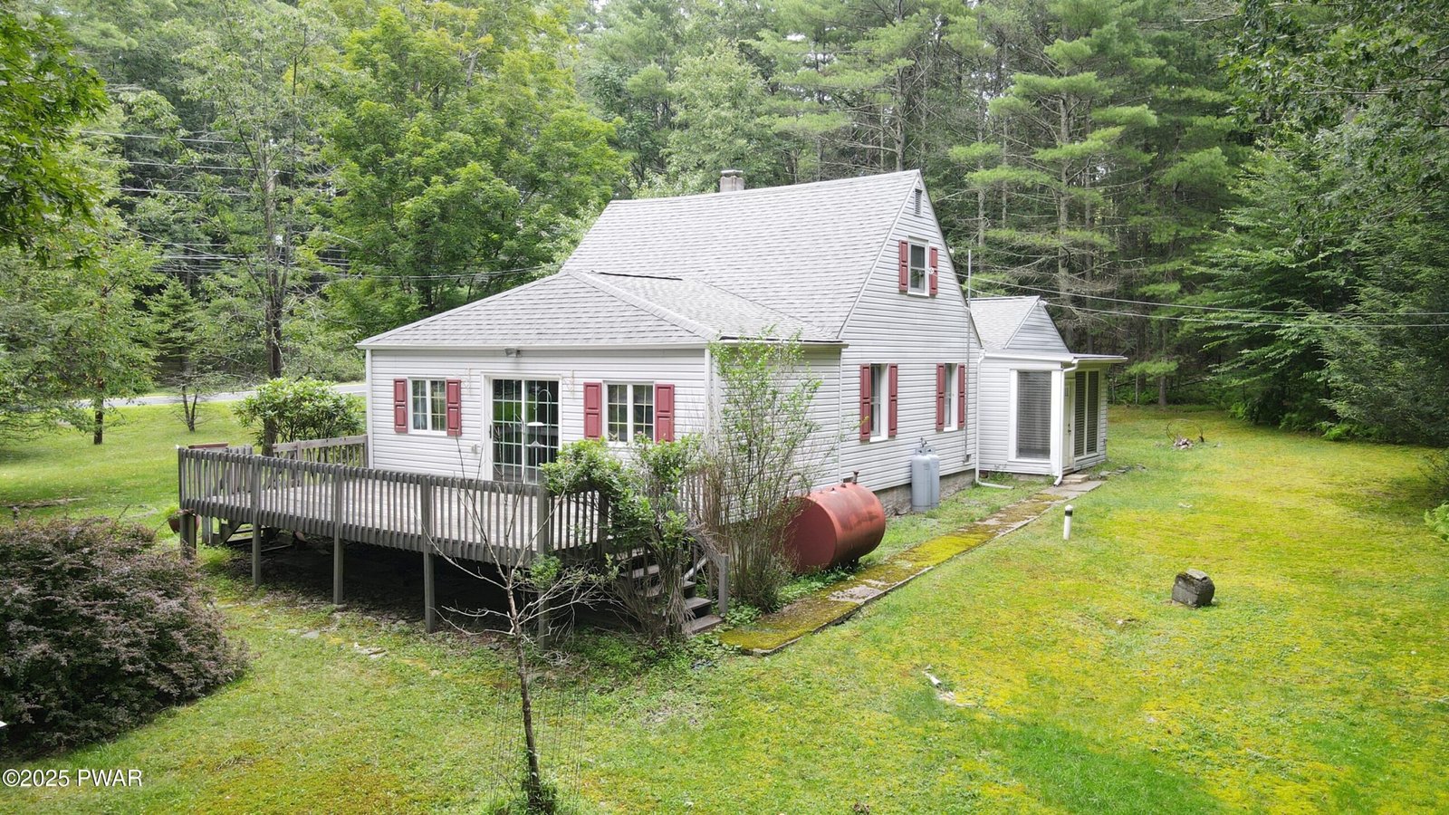 NO COMMUNITY AND ACREAGE!! This lovely charmer has it all! As you pull into the paved driveway the property boasts an oversized garage with workshop. Front entrance porch has trex decking to sit and hear the babbling brook that borders the property where you can fish or just listen to nature. The home has 3 bedrooms, 1, bath, a large family room with a room too make a four season room, eat in kitchen, dining room that steps down to a large living room with gaming area to play some cards and just relax. You can then step out to the large entertaining deck on the property that overlooks the lush green lawn and many beautiful trees. Close to all major roads with low taxes and all on 1.97 acres! Don't let this one get away!