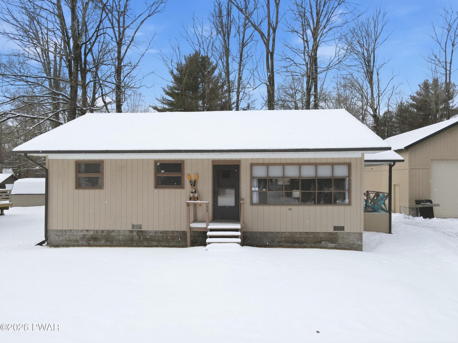 Your dream lake home getaway at Wallenpaupack! This ideal property features a three bedroom cabin that is just the right size in addition to a 24x40 garage! All of this is just a short distance to access to both Lake Wallenpaupack and the Wallenpaupack River. The adorable home has a large living room that is open to the very functional kitchen and dining area. You will find three bedrooms and one full bathroom which features tile flooring. This adorable home has plenty of space yet is not too much to clean and maintain. The impressive garage has power and a water hookup. Its size give you ample storage and room for a large workshop. Indian Rocks is a great lake community, allowing golf carts and UTVs so you can easily get to their community pool, beach on Lake Wallenpaupack, or the fishing pond! They also have a playground, beautiful clubhouse with monthly events, and a small gym. There is opportunity to get a boat slip in the lake (check with the community for waitlist times) and a great boat launch to use in the meantime! This home is ready to be enjoyed and is available at a great price!