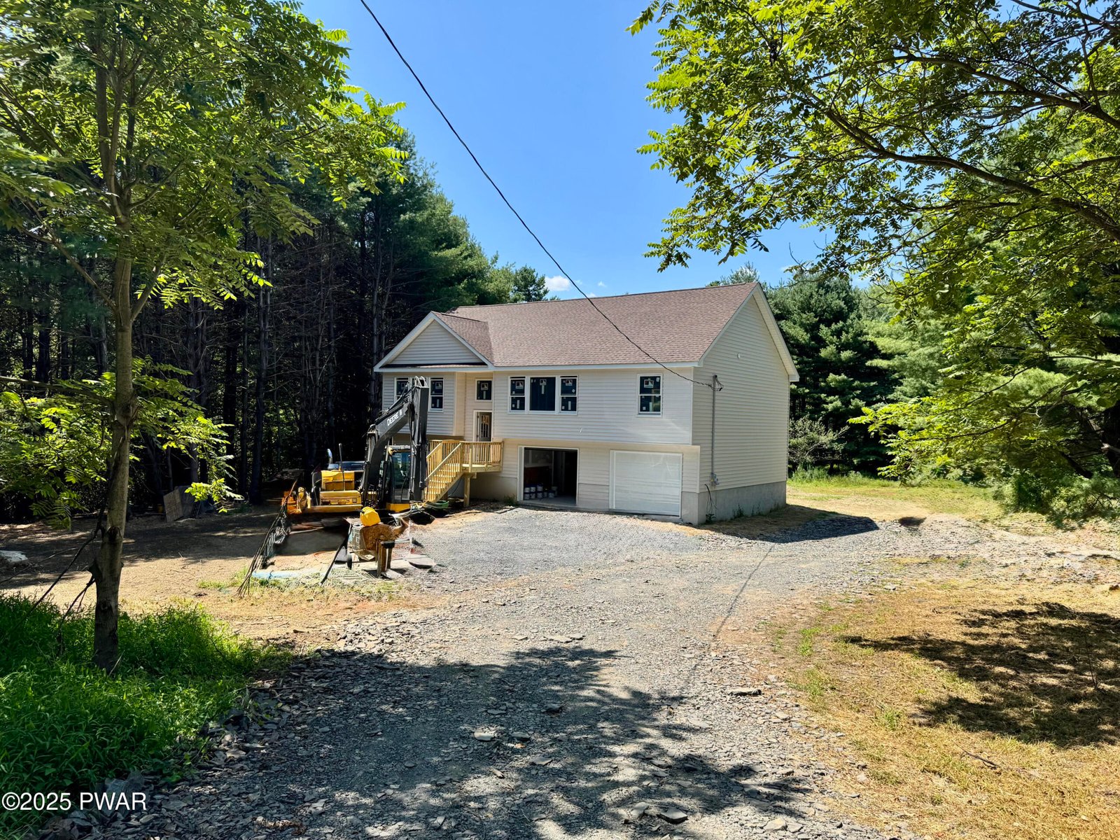 New Construction two-story home sits on a serene 1.41-acre wooded lot in Pocono Mountain Water Forest, just 10 minutes from historic downtown Milford, PA, and 5 minutes from shopping in Dingmans Ferry. Offering a bright, open-concept living room, dining room, and kitchen living space. The home includes three bedrooms and three full baths, with a primary bedroom featuring a beautifully tiled walk-in shower. Hardwood floors flow throughout the main level, with recessed lighting and a spacious kitchen with granite countertops, a central island, modern appliances, and ample cabinetry. The dining area opens to an inviting back deck overlooking a spacious backyard, perfect for outdoor entertaining. The finished lower level provides versatile bonus space, direct garage access, a separate side entrance, a cozy pellet stove, and a utility room with washer and dryer. Additional features include Andersen windows, propane-fired forced-air HVAC, durable vinyl siding, a two-car attached garage. Community amenities include a pool, tennis and basketball courts, playground, clubhouse, and scenic beach access, blending comfort and recreation in beautiful Northeast PA. HOA fees and community details available upon request.Free 1 Year Home Warranty to the Buyer of the home!