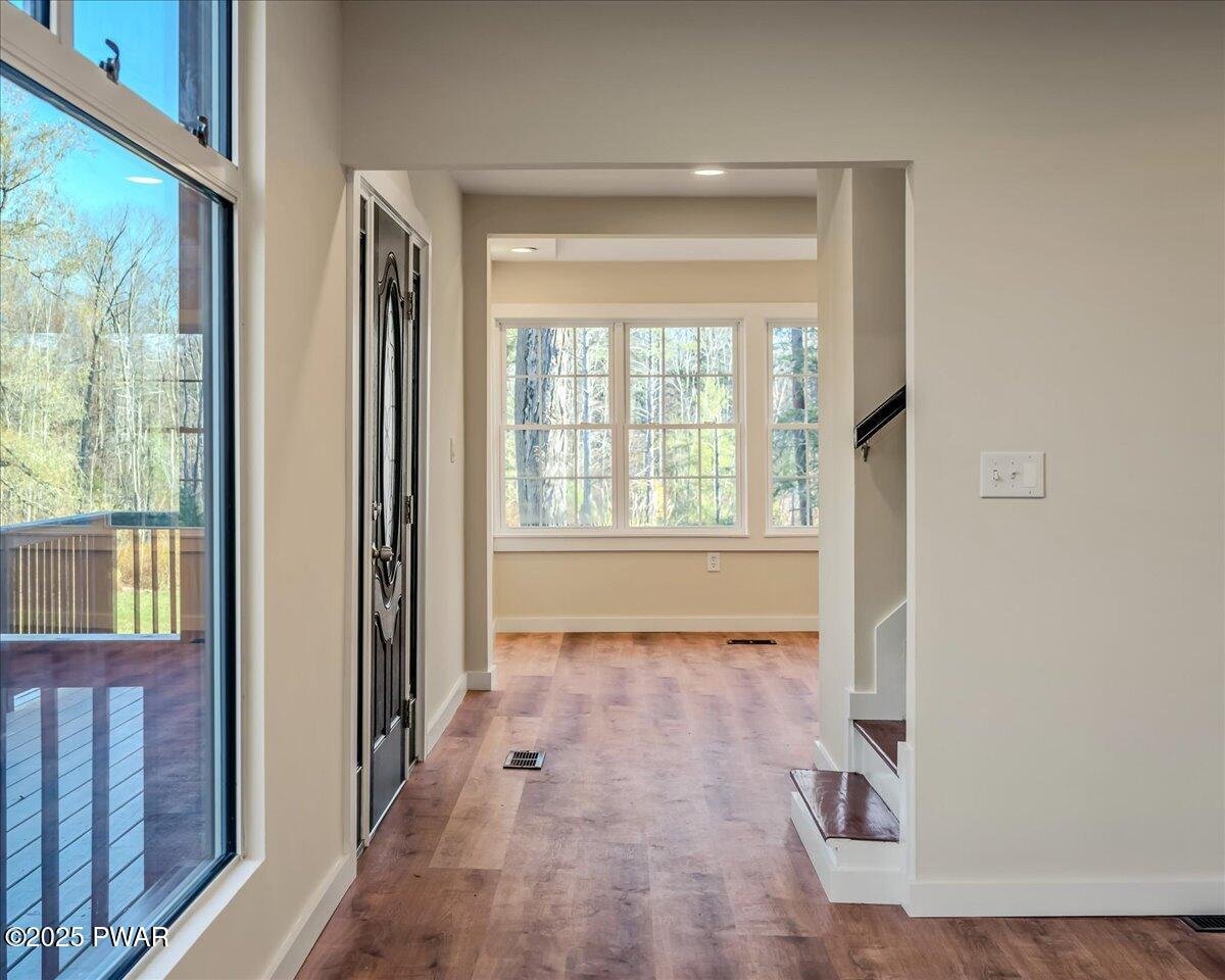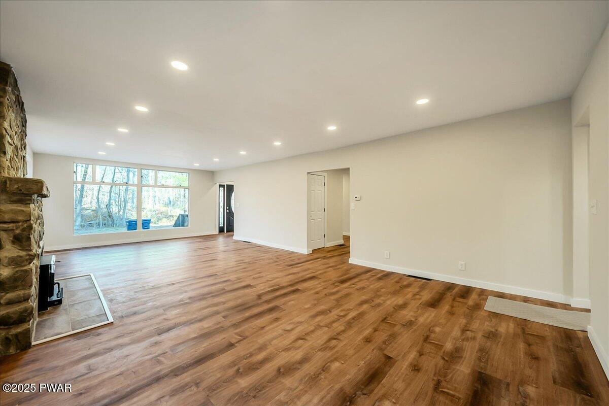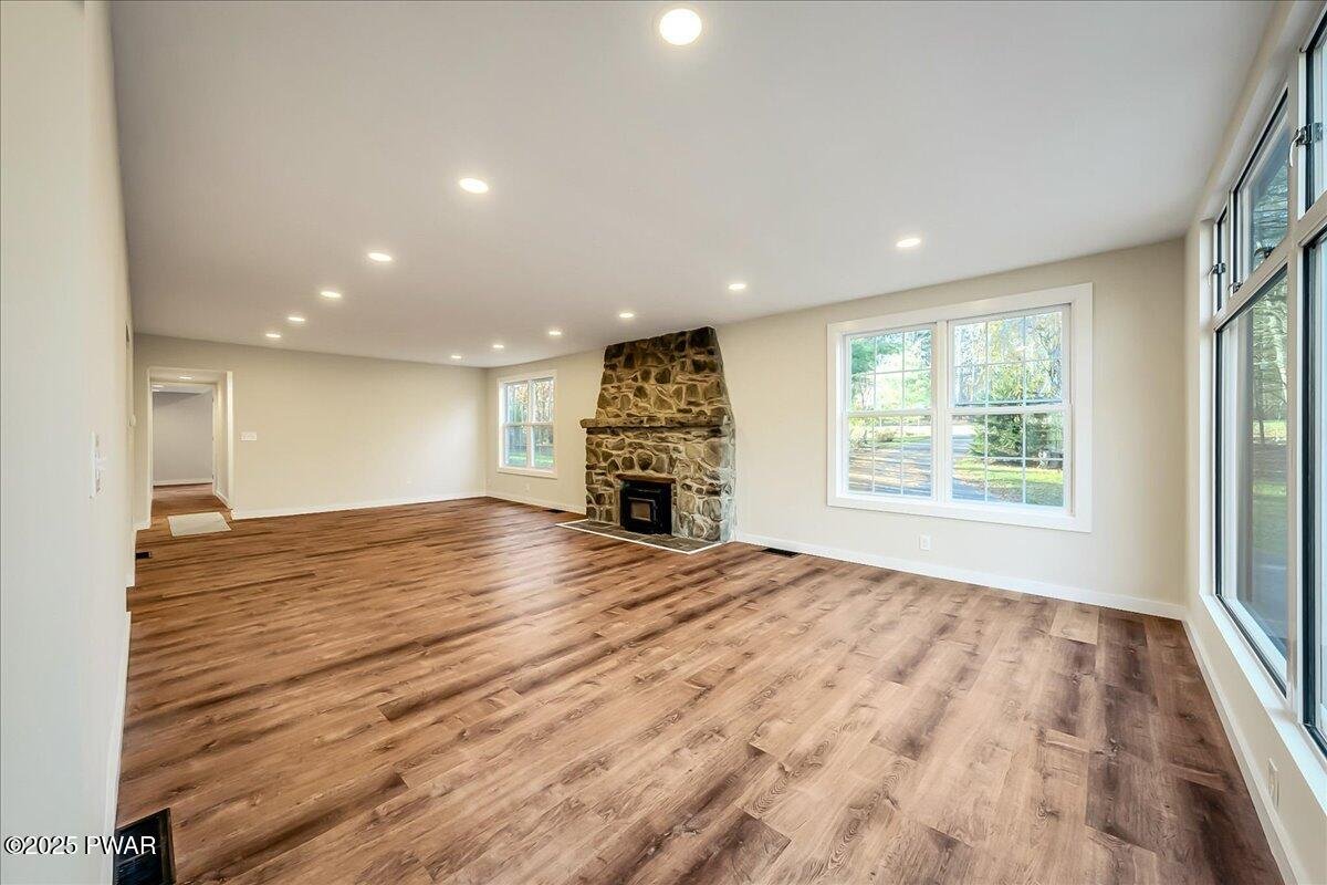 Do not wait to see this completely renovated short-term-rental-friendly stunner set on nearly two acres with two private ponds and unforgettable sunset views. This Clifton Township property is a standout opportunity for investors or anyone seeking a move-in-ready Pocono retreat. Every inch of this home has been reimagined with high-end finishes and modern upgrades, offering the perfect blend of style, comfort, and functionality. Inside, find luxury vinyl plank flooring throughout, a show-stopping stone fireplace in the living room, spacious dining room with wall-to-wall windows and family room with wood stove and sliding doors leading to the expansive back deck. The chef's kitchen boasts sleek gray cabinetry, a designer tile backsplash, stainless steel appliances, and a large island ideal for entertaining. The massive first-floor primary suite includes a custom walk-in closet system, while an additional first-floor flex room offers potential for a game room or extra sleeping space. Upstairs, four more bedrooms (including two with private en suite baths) provide the perfect setup for large groups or STR guests. Outside, a front porch, large back deck, and fire pit area overlooking the ponds make the most of the property's serene natural setting. Conveniently located just minutes from I-380, Gouldsboro State Park, and less than 30 minutes from Mount Airy Casino, Kalahari Resort, and The Crossings Premium Outlets, this home is a rare find. Homes this special don't last - schedule your private tour today!