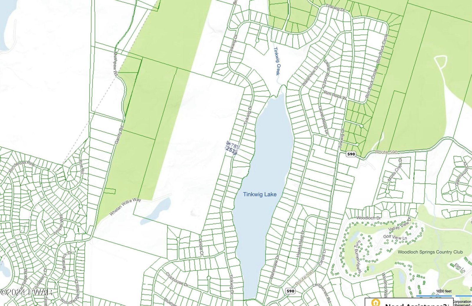 LAKE VIEW lot, 1 acre in Tink Wig Mountain Lake Forest Estates. Across the street from Lakefront. There is a 110 acre lake, for great fishing and kayaking. There is a heated summer pool and we are just 5 minutes to the famous Woodloch resort. Tink Wig is just 10 minutes to downtown Hawley for shopping, 20 minutes to Honesdale and hospital, 2 hours to NYC and NJ.