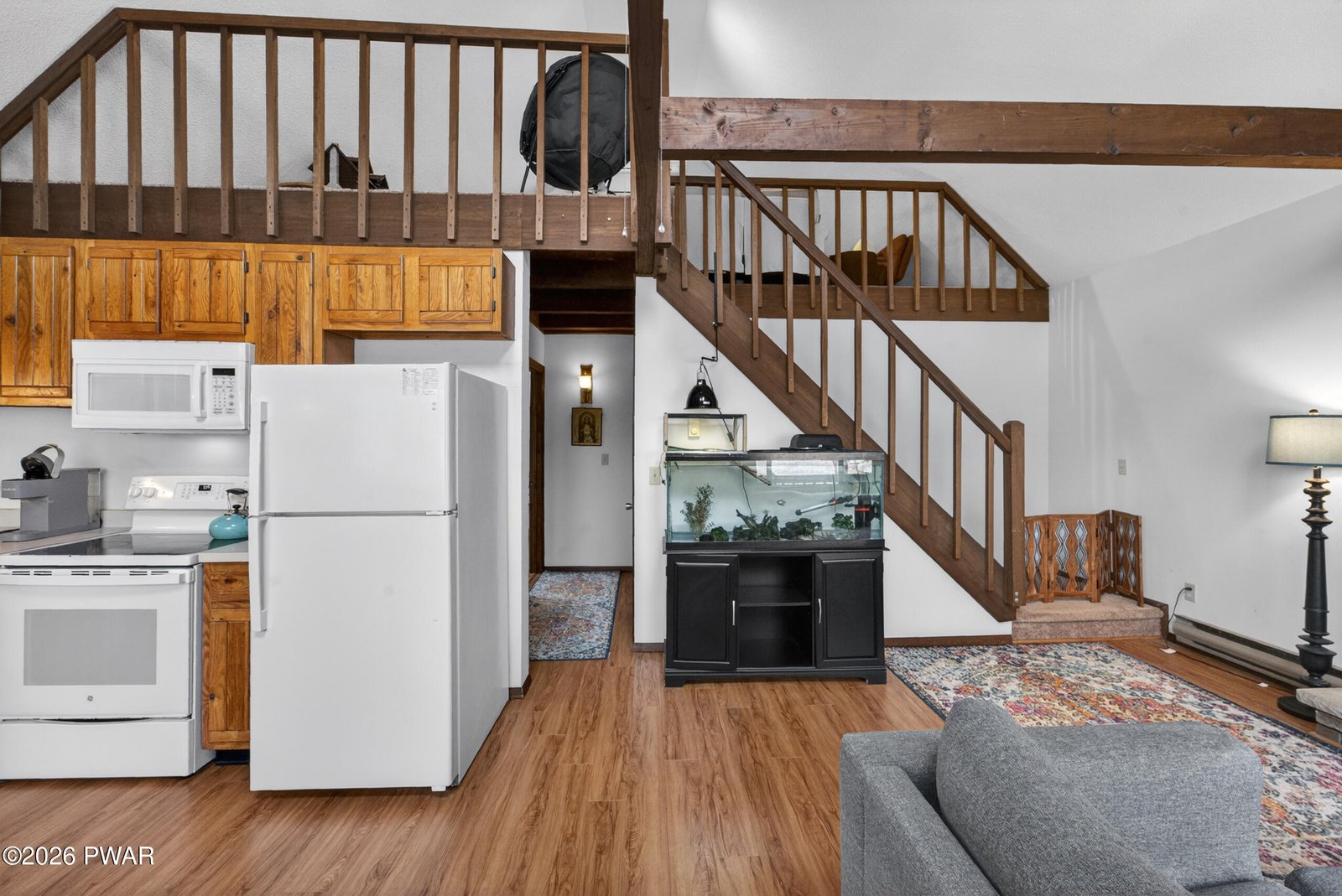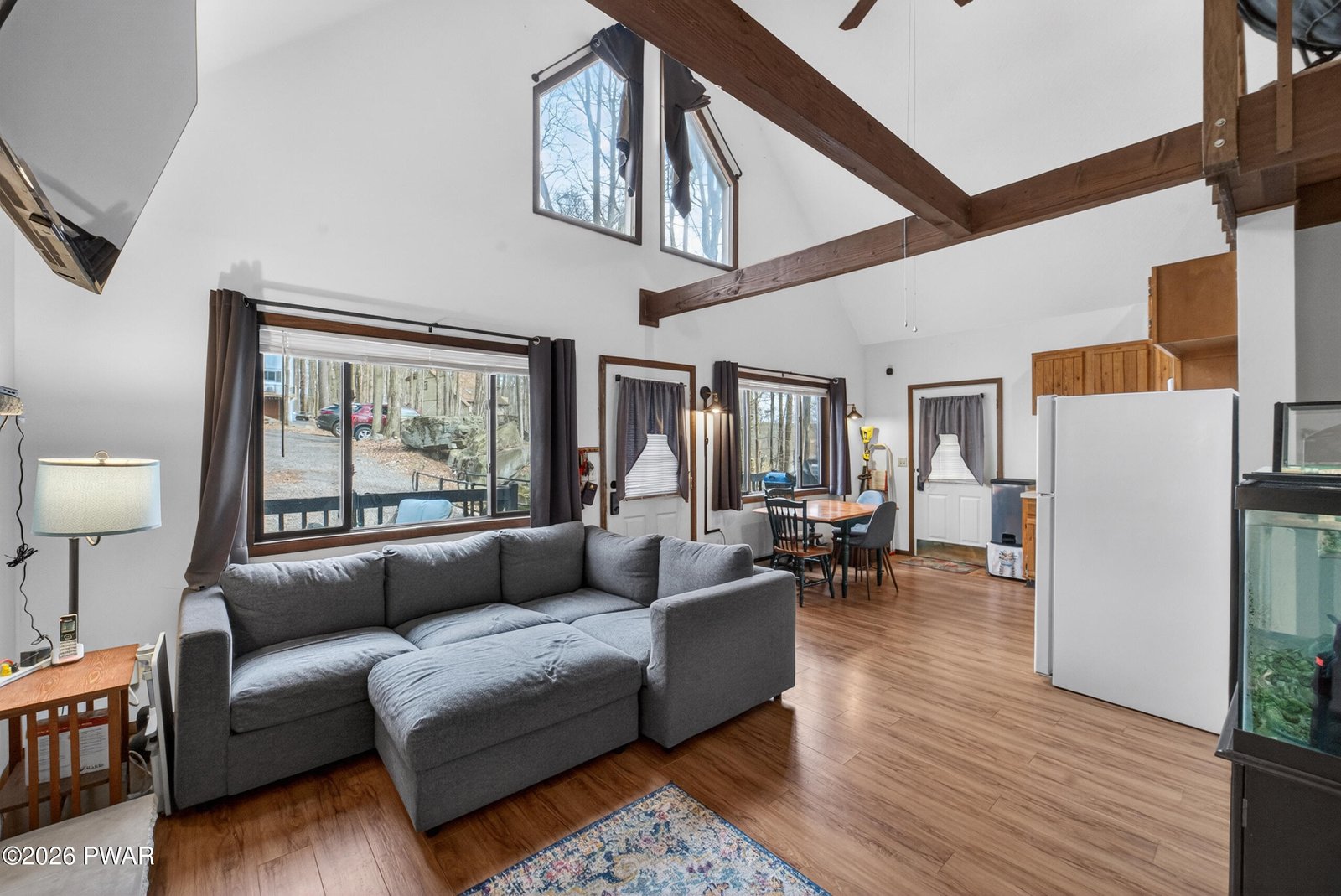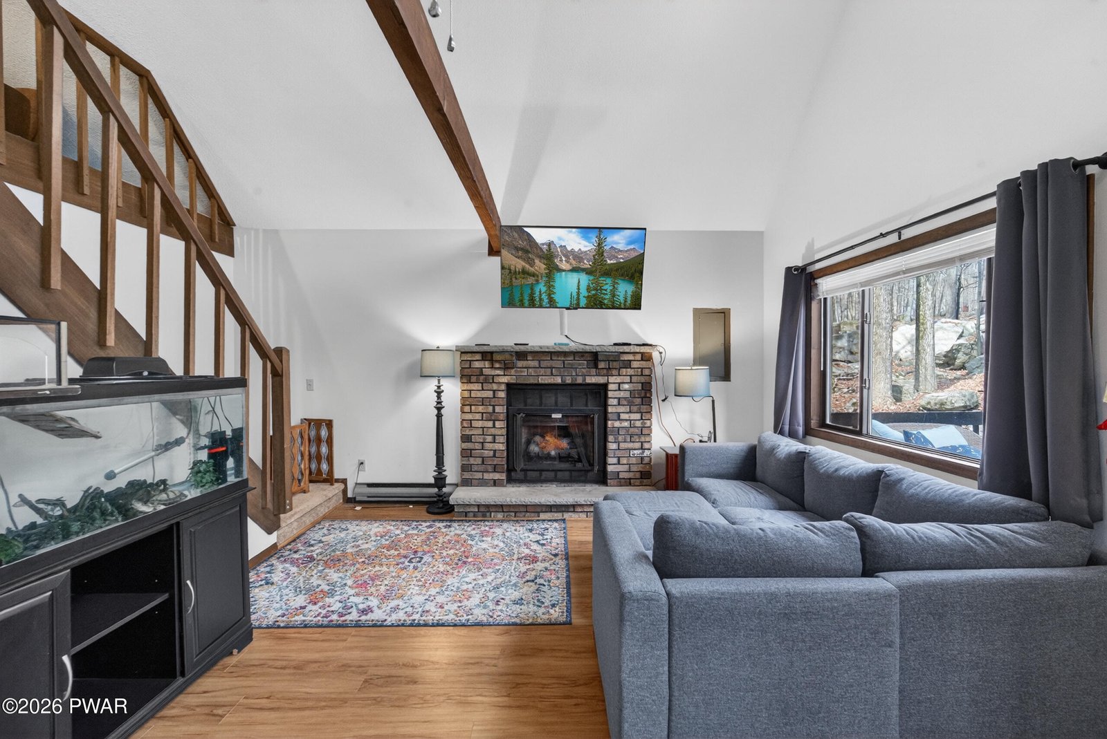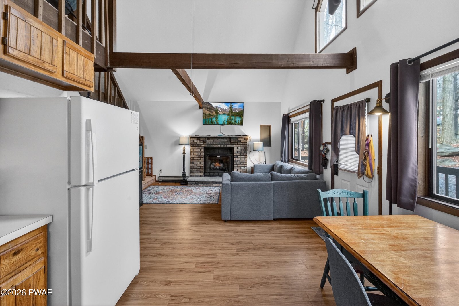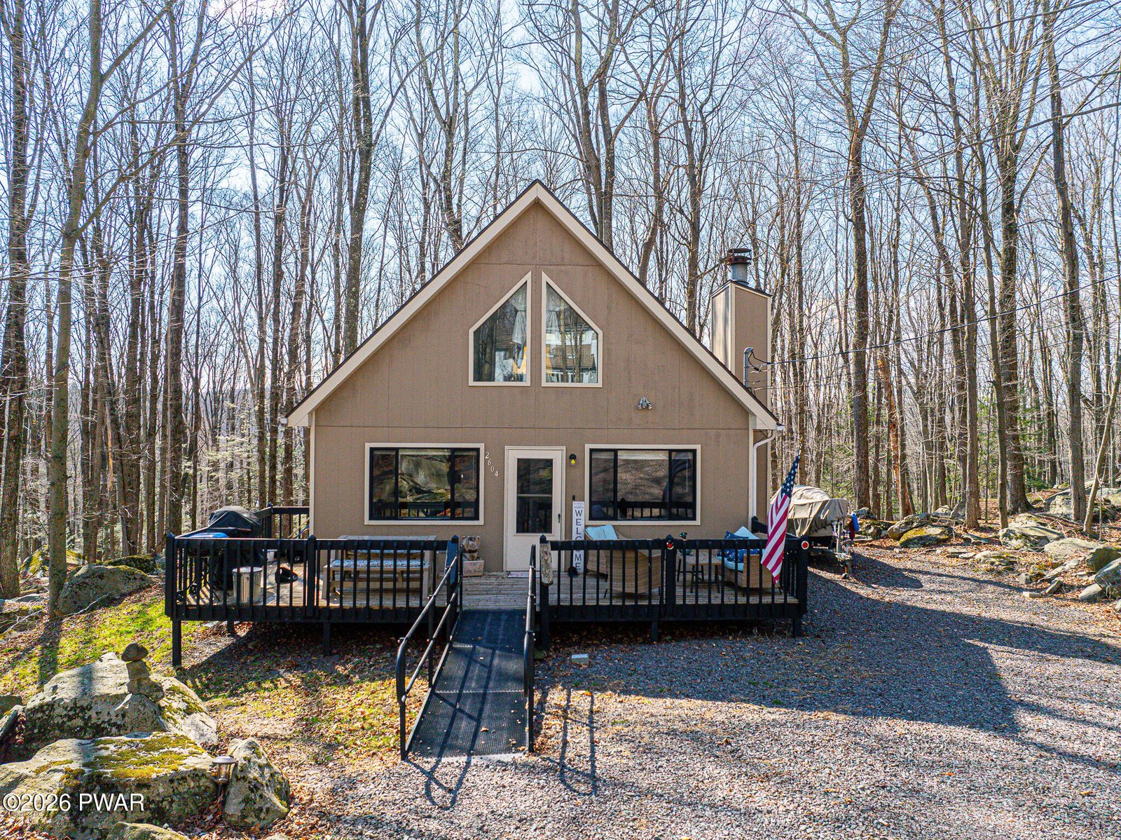 Adorable chalet home in an amenity-rich community where you can truly enjoy year-round entertainment, some just steps from your door, including access to ski slopes, golf, multiple lakes with boating and kayaking, pools, tennis, pickleball, and a tiki bar, all within a fully gated community with 24/7 security and a desirable school district. Set on a peaceful dead-end street with great curb appeal and plenty of parking, this home offers a rare combination of privacy and convenience. You're within walking distance to pickleball, tennis, and other community amenities, and just minutes from the gates for easy in-and-out access--something locals know is a huge advantage. Inside, there's an immediate sense of comfort the moment you walk in. Vaulted ceilings and exposed beams give the main living space an open, airy feel, while the brick-faced propane fireplace adds the kind of warmth you'll appreciate year-round. The layout flows naturally, making it just as comfortable for a quiet night in as it is for hosting friends and family. The primary bedroom is conveniently located on the main level, offering easy, functional living, while the loft provides additional flexible space that can serve as a home office, gym, or guest area. Tongue and groove ceilings in the bedrooms bring in that classic chalet character, and practical updates like a new water heater and first-floor LG washer/dryer combo make everyday living easy. Out front, the expansive deck space is where this home really shines--perfect for entertaining, relaxing, or enjoying the peaceful setting after a day spent on the lake, the slopes, or the golf course. At this price point and with its extremely favorable tax rate, this is the kind of opportunity that makes sense--whether you're buying your first home, looking for a weekend place, or adding to your investment portfolio, with the added benefit of AIRBNB potential in a highly sought-after community.