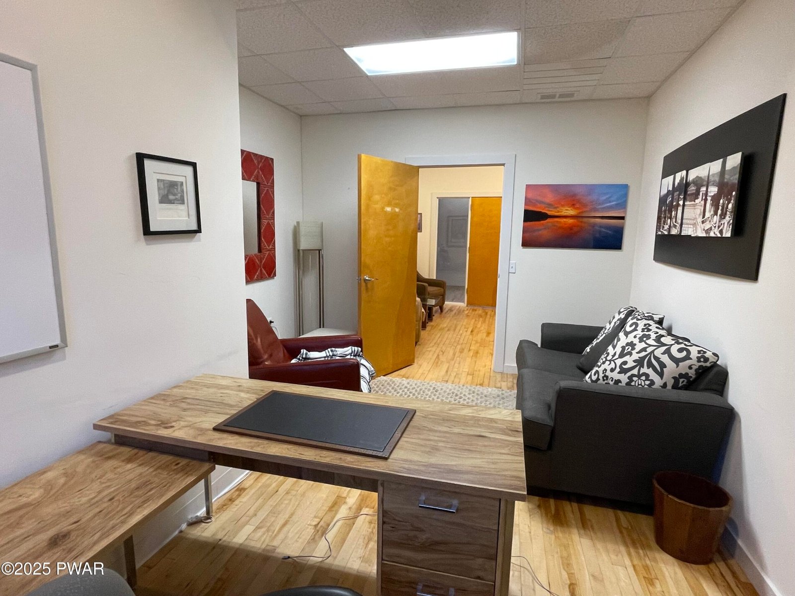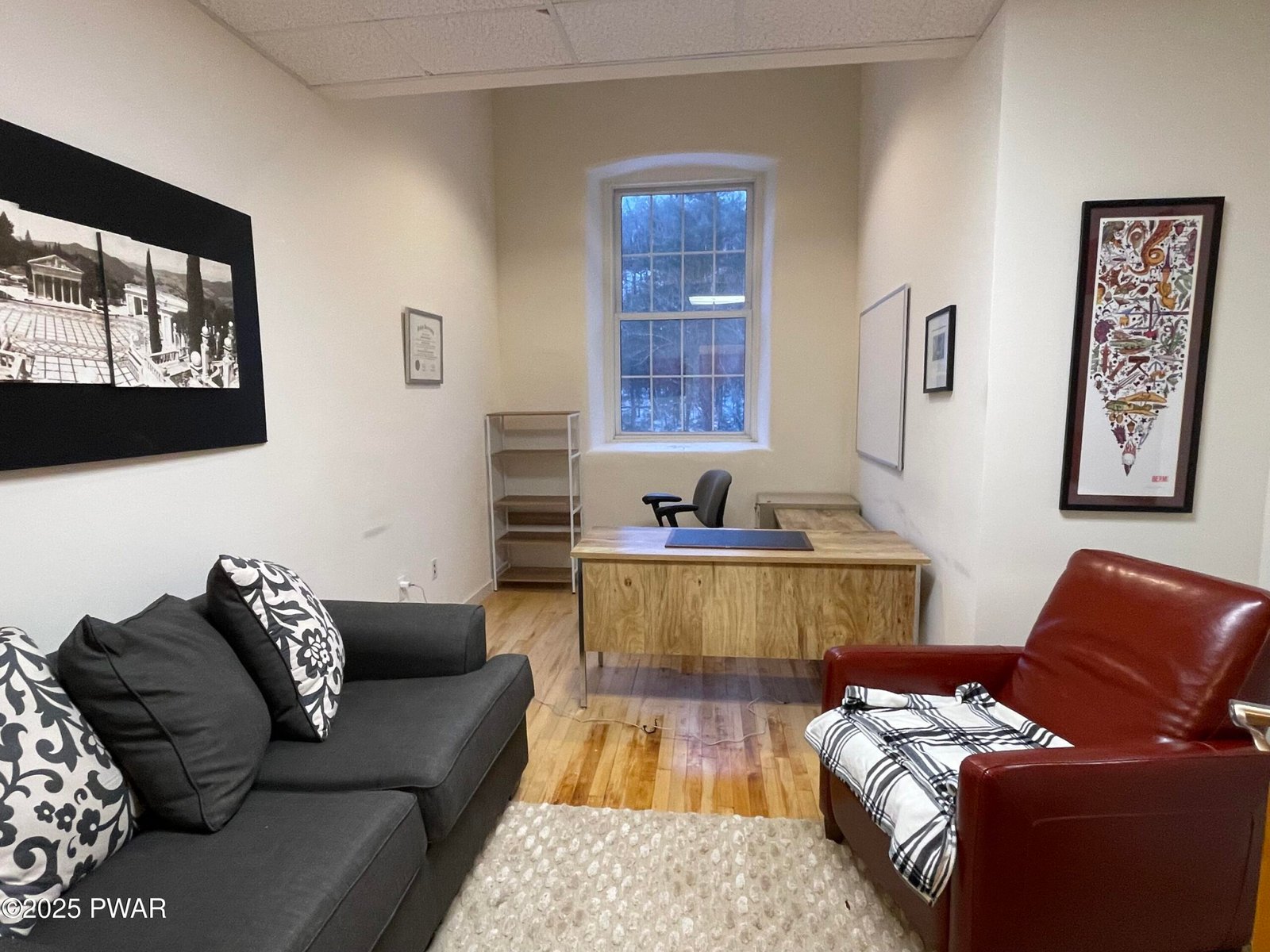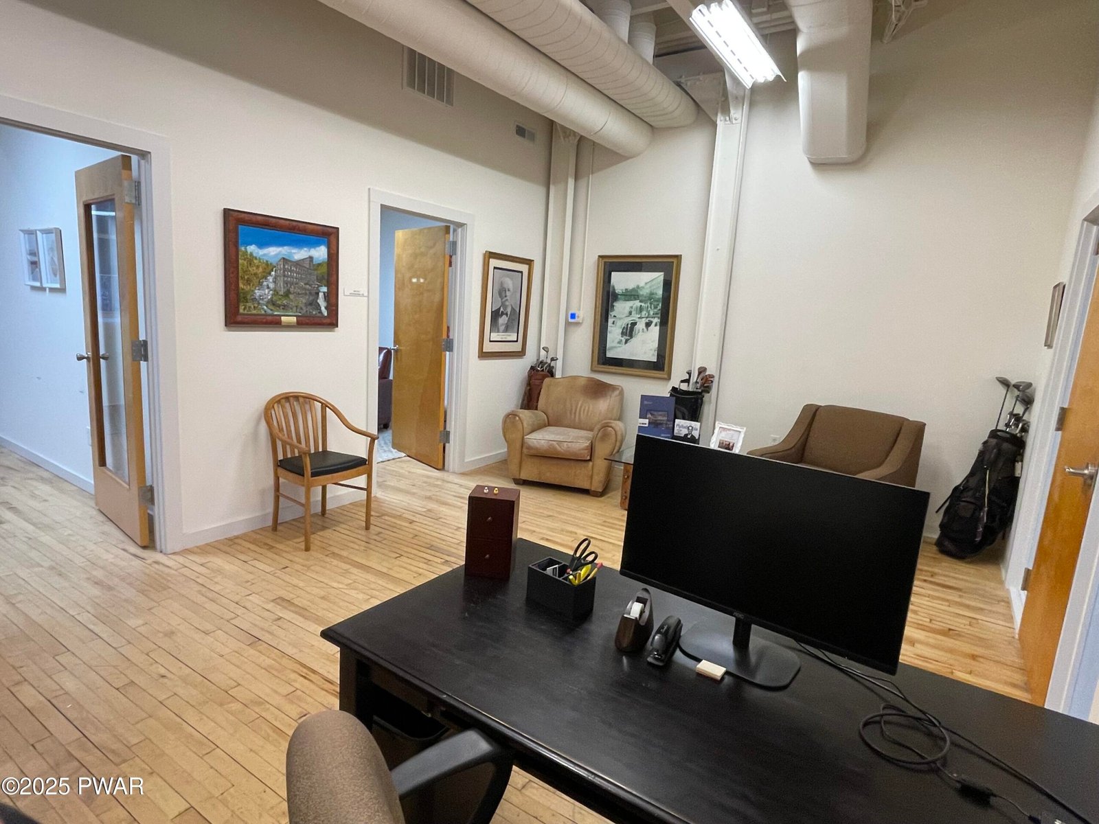 The Hawley Silk Mill is an iconic landmark in the heart of Hawley, offering a truly unique professional setting. This featured second-floor suite enjoys easy handicap accessibility and is filled with natural light, highlighted by beautiful hardwood floors throughout. The space includes a reception space and five private offices, making it ideal for a variety of professional uses. In addition to this suite, the Hawley Silk Mill offers multiple office suites of varying sizes and rental rates, with additional spaces becoming available from time to time--please call for current availability and details. Rent includes taxes, building insurance, electric, water, natural gas, sewer, and CAM services (trash, mail, and snow removal of common areas), providing exceptional value and convenience. The building features retail and fitness facilities on the main floor, a collection of professional offices on the second floor, and Lackawanna College occupying the third floor. Event spaces and food outlets further enhance the dynamic, mixed-use atmosphere found throughout the lower levels.