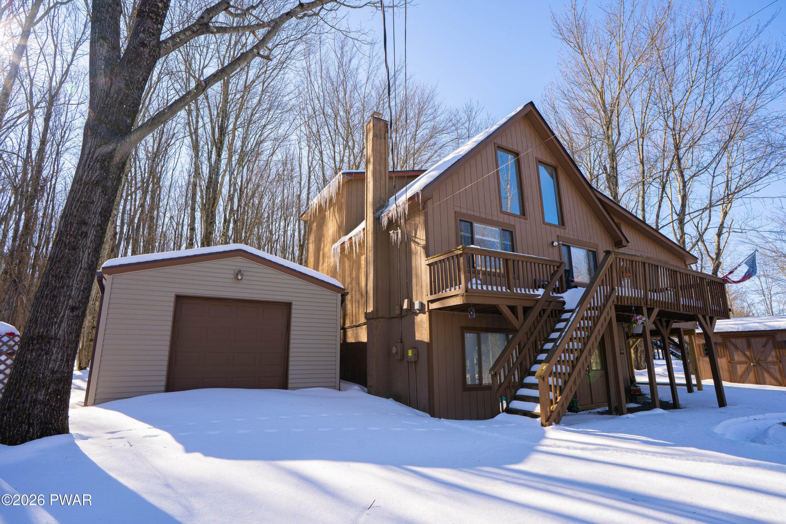 Welcome to your perfect Pocono retreat! This charming chalet-style home offers the ideal blend of rustic character and modern updates. Step inside to an inviting open floor plan with soaring ceilings, warm wood accents, and abundant natural light that creates a bright and airy feel throughout. The updated kitchen flows seamlessly into the living and dining areas--perfect for entertaining or cozy nights by the fire.Enjoy the beauty of nature from your deck, or relax after a day of adventure in this thoughtfully maintained mountain getaway.Located in the gated recreational community of The Hideout, you'll have access to incredible amenities including pristine lakes, sandy beaches, multiple pools, a golf course, ski hill, bar and restaurant, fitness center, and even a tiki bar for summer fun. Whether you're looking for a full-time residence, vacation home, or investment property, this chalet delivers the best of Pocono living!