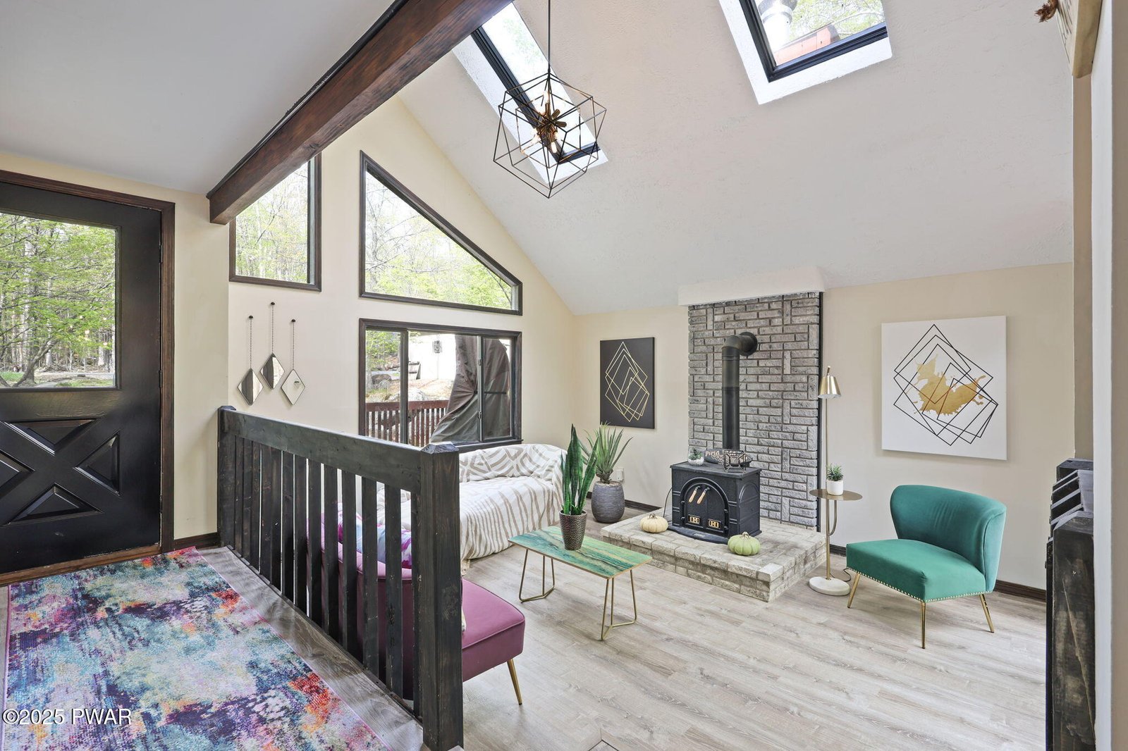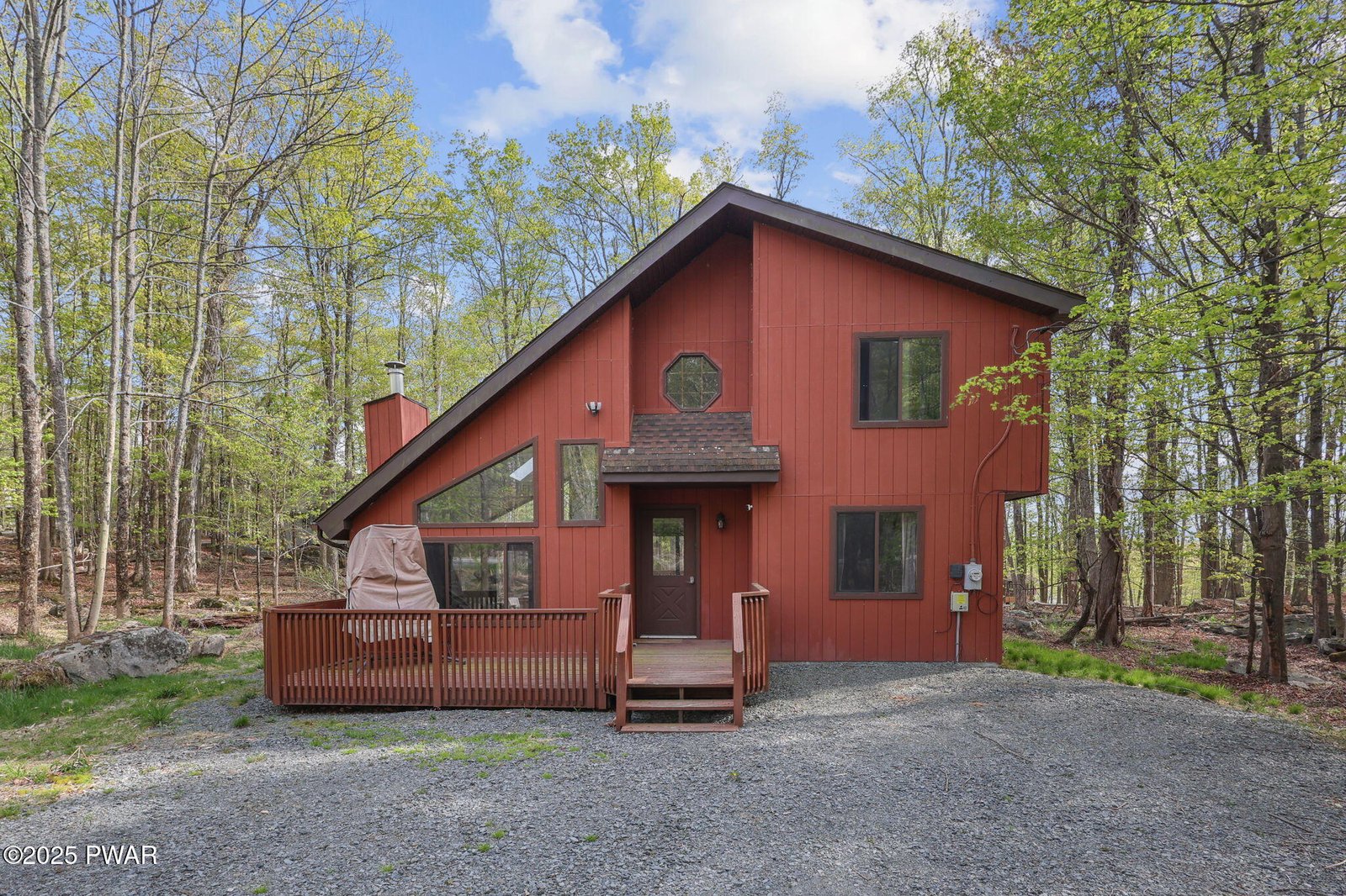 Tucked away on a quiet, wooded street in The Hideout, this meticulously maintained contemporary mountain retreat offers comfort, privacy, and access to top-tier amenities. The open main level features vaulted ceilings, a cozy wood-burning stove, and gorgeous vinyl flooring, while the kitchen boasts stainless steel appliances and knotty pine tongue-and-groove ceilings that extend into both generously sized bedrooms--one on each floor, each with its own full bathroom. Upstairs, a spacious loft with newer carpeting and a private balcony provides the perfect spot for guests or relaxation. A back deck off the dining area overlooks the peaceful wooded setting, and a large driveway ensures ample parking. Residents will enjoy all The Hideout has to offer, including lakes, pools, beaches, tennis courts, golf, a clubhouse, and more. Home is rented unfurnished. Tenant is responsible for all utilities, plowing the driveway and lawn maintenance. One pet allowed with an additional $500 security deposit. A $500 rental fee will be charged to the tenant per year for HOA membership, billed by the HOA. Sewer and water are $411 quarterly, the responsibility of the tenant. Landlord pays taxes, insurance, and HOA dues. Apply using this link. https://apply.link/TyhkjZc