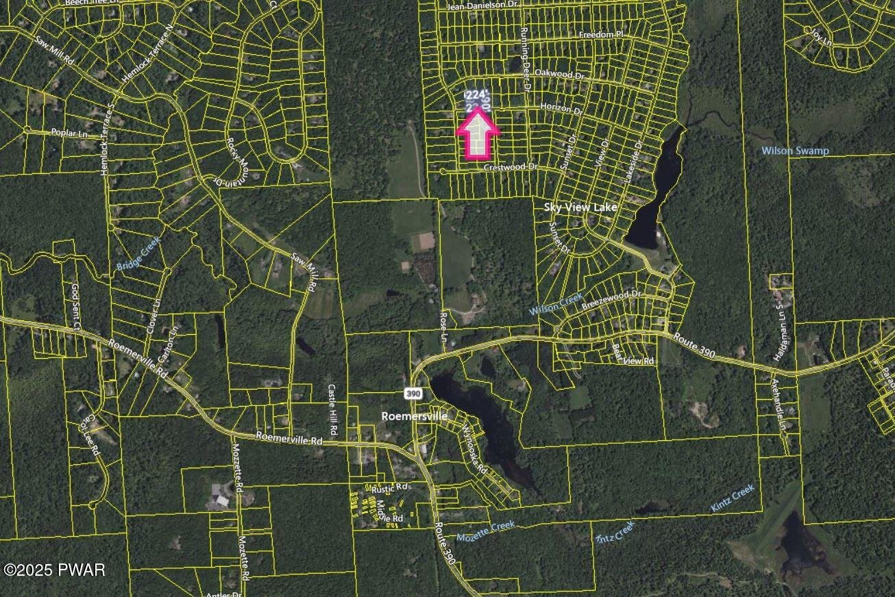 A one acre lot located in Skyview Lake Community that offers a 16 acre non-motorboating lake, clubhouse, outdoor pool, low dues and ATVs allowed. Community adjoins the Delaware State Forest, nearby Promised Lake State Park, Lake Wallenpaupack and so much more...outdoor adventures await!