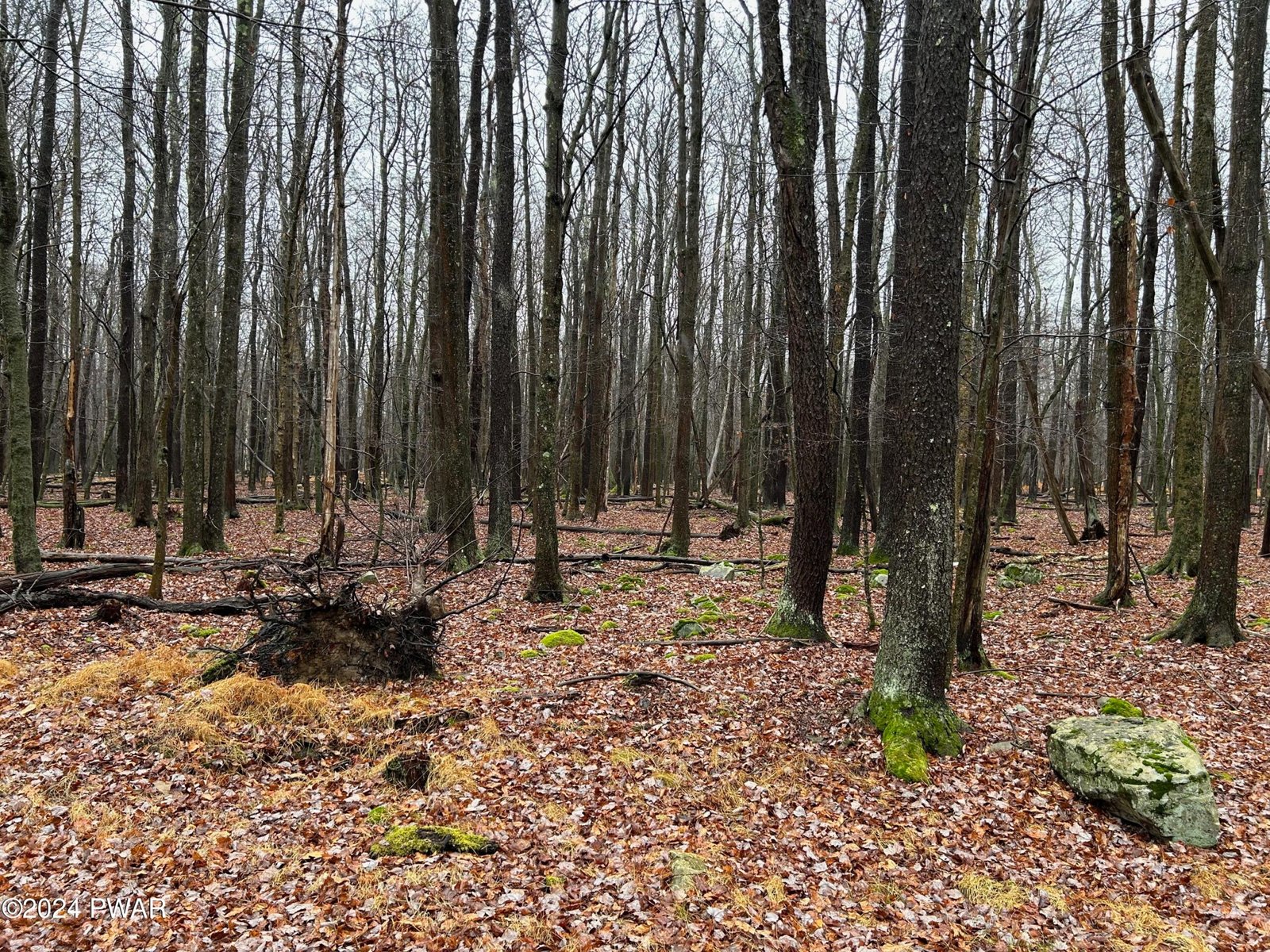Great wooded lot in quiet section of Pocono Springs, which is located on one of the highest points (2,100 feet above sea level) in the Pocono Plateau. Pocono Springs provides an easy commute to the New York, New Jersey, and Philadelphia metropolitan areas, as well as convenient access to Scranton and Wilkes-Barre. The community is bordered by State Game Lands and is abundant with wildlife. Pocono Springs boasts the 133-acre Crystal Lake, which is stocked annually. The Recreation Island features a clubhouse, a heated swimming pool, and courts for basketball, handball, tennis, bocce, and shuffleboard.