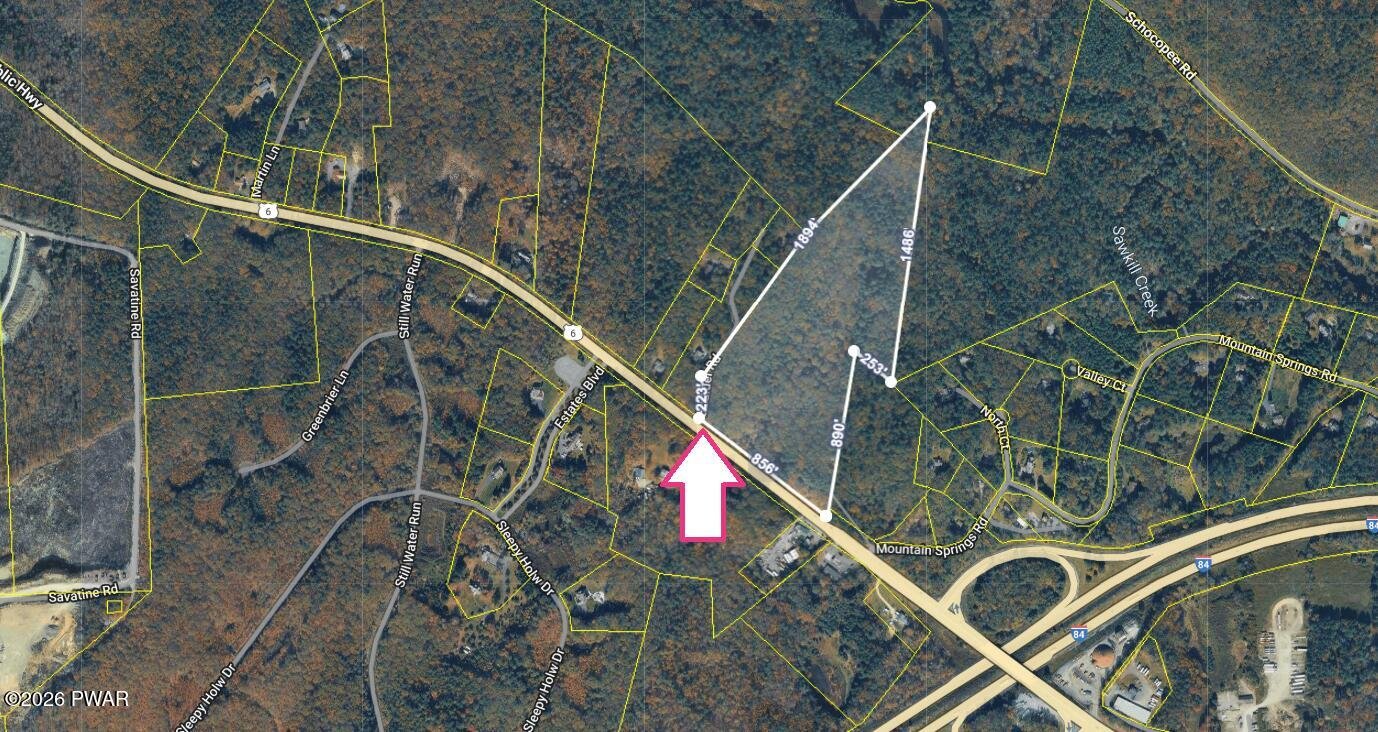 26 acres near Interstate 84 in Milford, PA. Commercially zoned. Over 856' of road frontage on State Route 6.